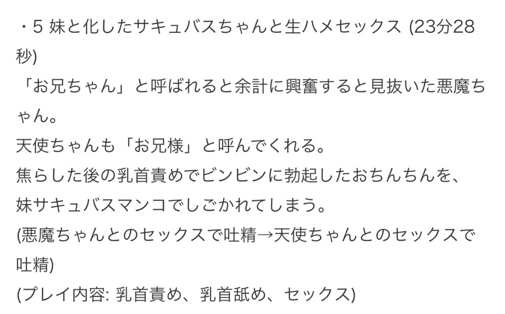 悪魔ちゃんからは「お兄ちゃん」、天使ちゃんからは「お兄様」と呼ばれます。このチャプターもチャプター4と同様、あま〜く優しい言葉責めです!