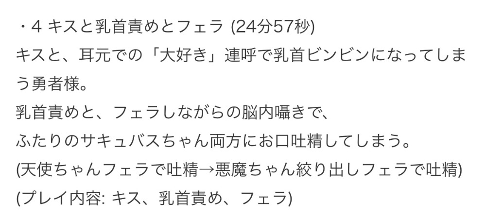 天使ちゃんのフェラ+悪魔ちゃんの両乳首責め、悪魔ちゃんのフェラ+天使ちゃんの両乳首責め、それぞれでフィニッシュがあります!