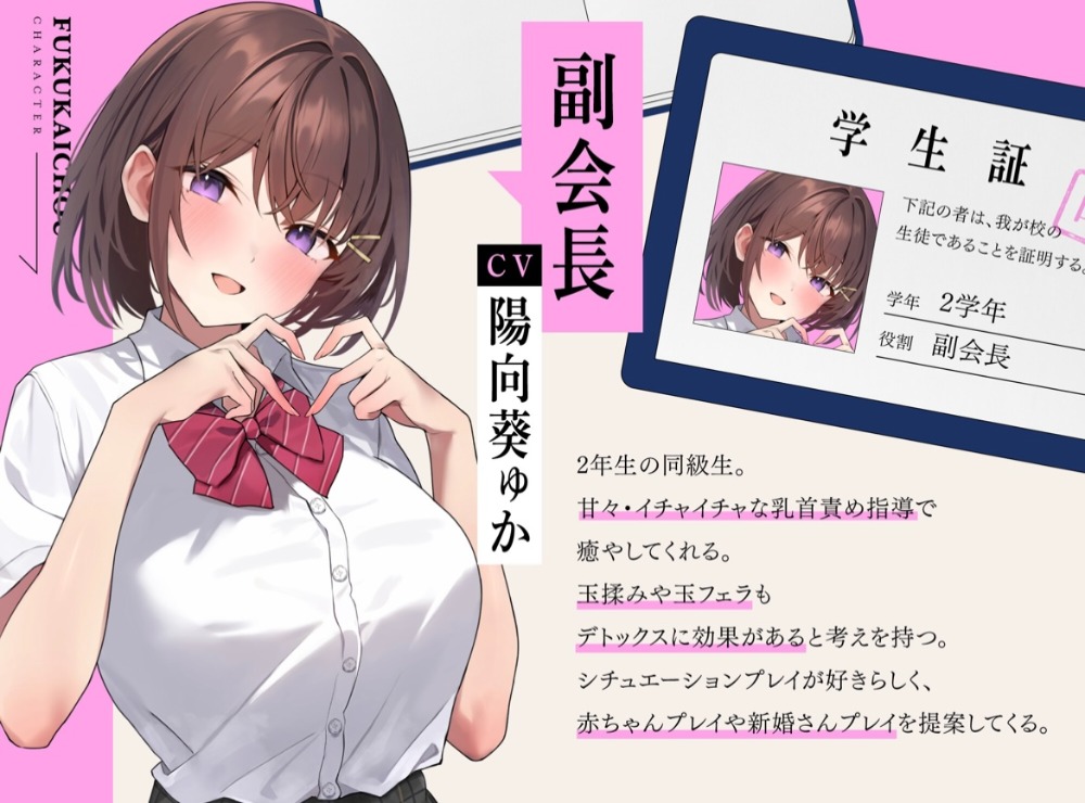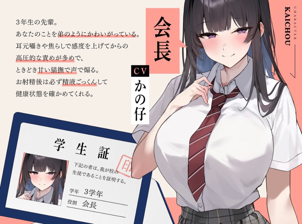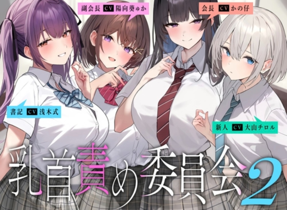 主人公は2年生なので、先輩である3年生の会長、2年生で同じクラスの副会長、後輩である1年生の書記、そして乳首責め委員会2では1年生の新人も入ってきます。