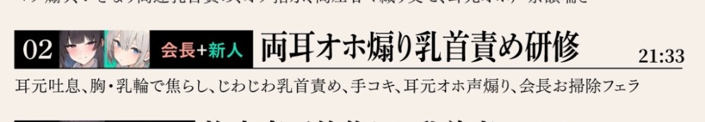 新人の研修と称して乳首責めされる展開や、初めは高圧的だった新人がだんだん甘々になってきたりと、2は新人ちゃんの存在が大きいですね。