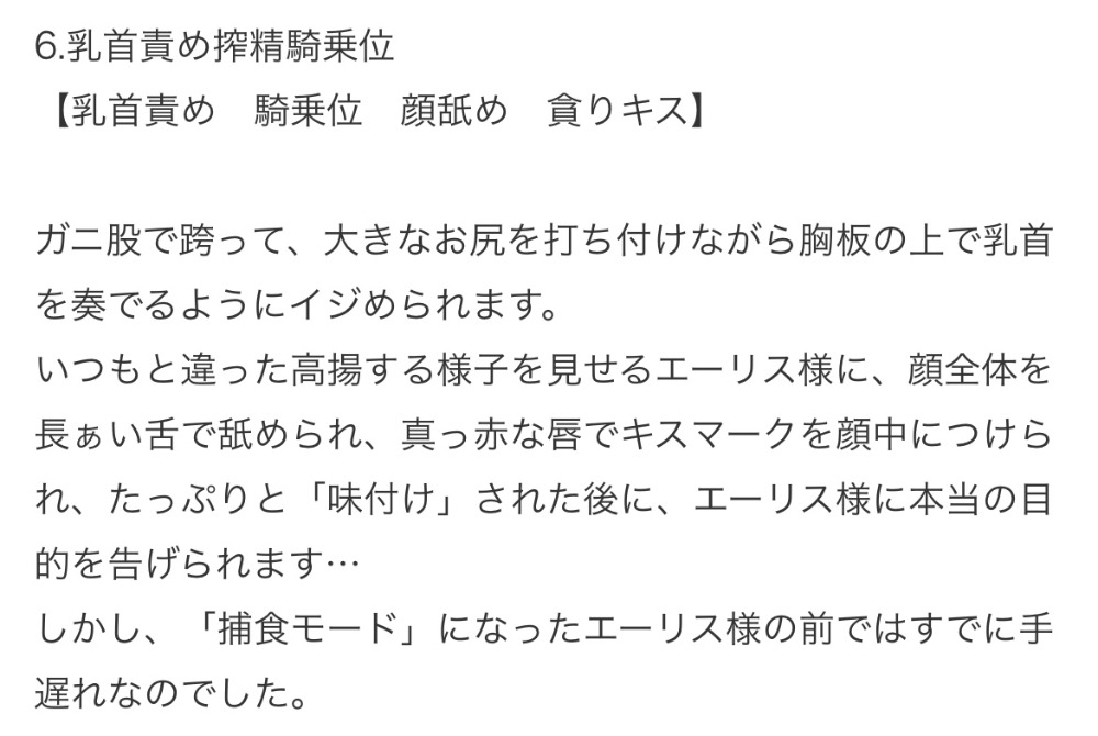 そしてどんどんヒートアップしていき、最後にはエーリスが捕食モードに移行し最後はあんなことに・・・ラストの耳元でのオホ声囁きは最高です。