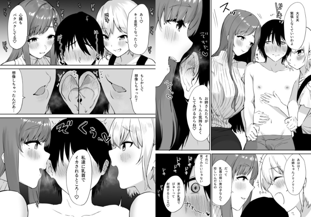 乳首責め好きなえっちな姉妹から甘く焦らされ、乳首を責められる作品です。本番なしですが、常に乳首責めの3Pハーレムはハズレがありません。