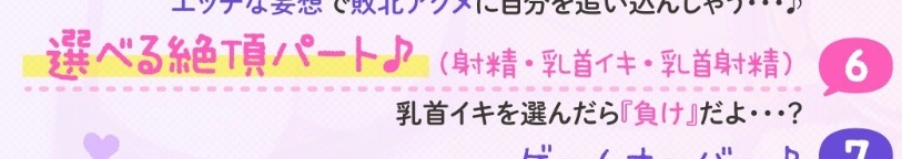 中でも乳首イキor乳首射精(チクシャ)がオススメです。この2つは敗北絶頂を煽られる言葉責めがあります!